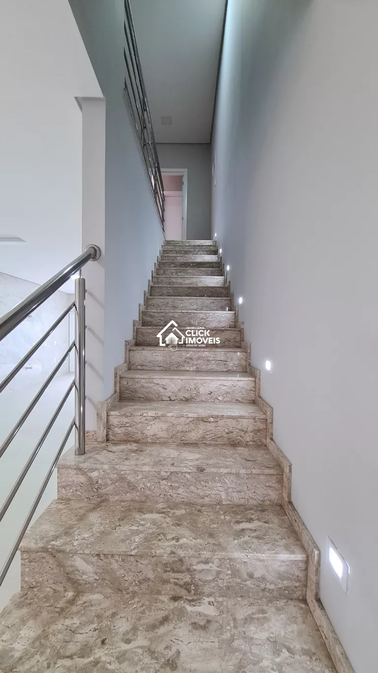 3 SUITES NA PARTE SUPERIOR COM PISO DE MADEIRA E ESCADA EM MÁRMORE,