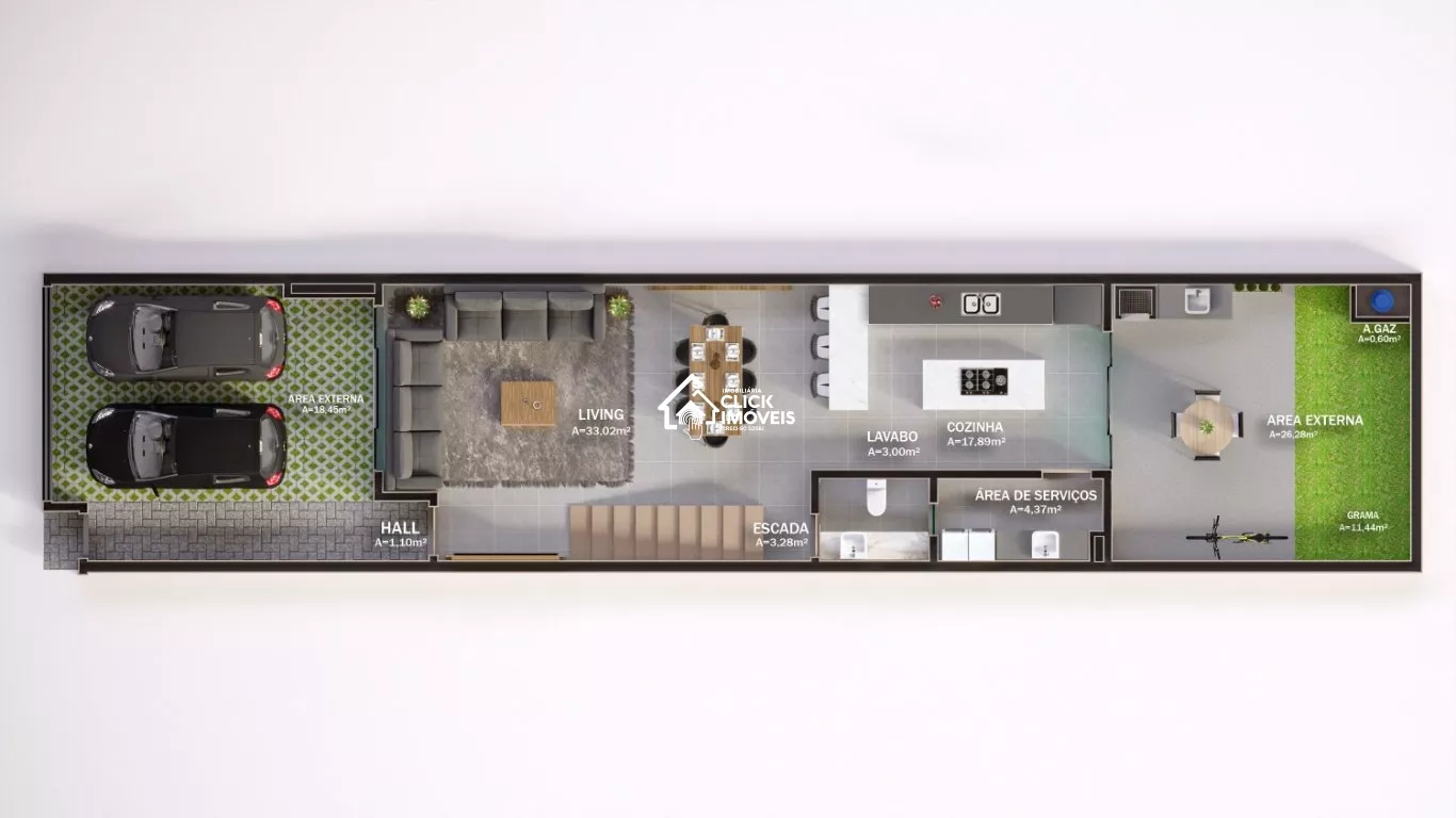 SALA/ÁREA GOURMET, LAVABO, ÁREA DE SERVIÇO AMPLA, DEPOSITO, PISO PORCELANATO, PORTA COM FECHADURA ELETRONICA NO TERREO.