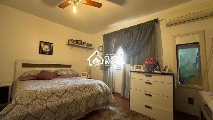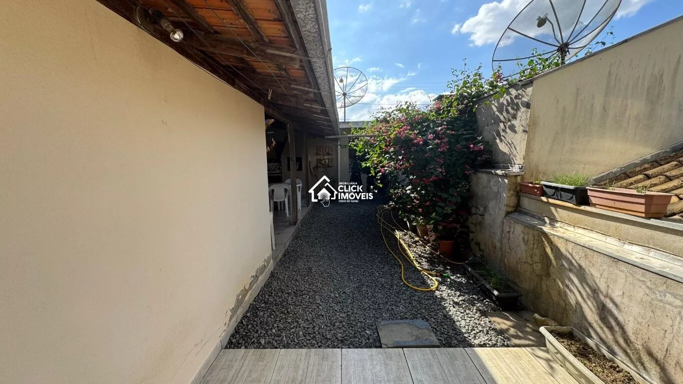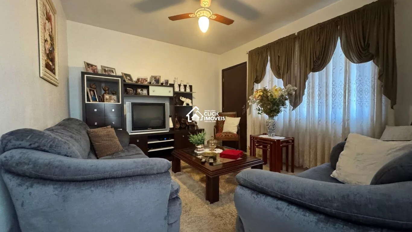 São quatro quartos amplos, duas salas, dois banheiros, três vagas de garagem,