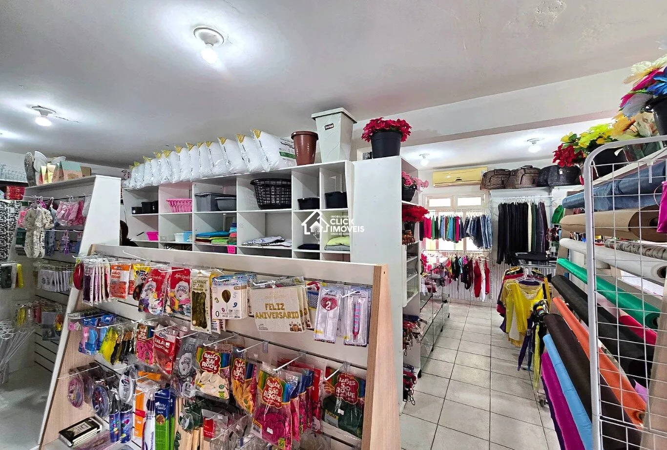 A loja está em pleno funcionamento há 17 anos, sendo vendida com todo o estoque e mobiliário completo da papelaria e da loja de roupas.